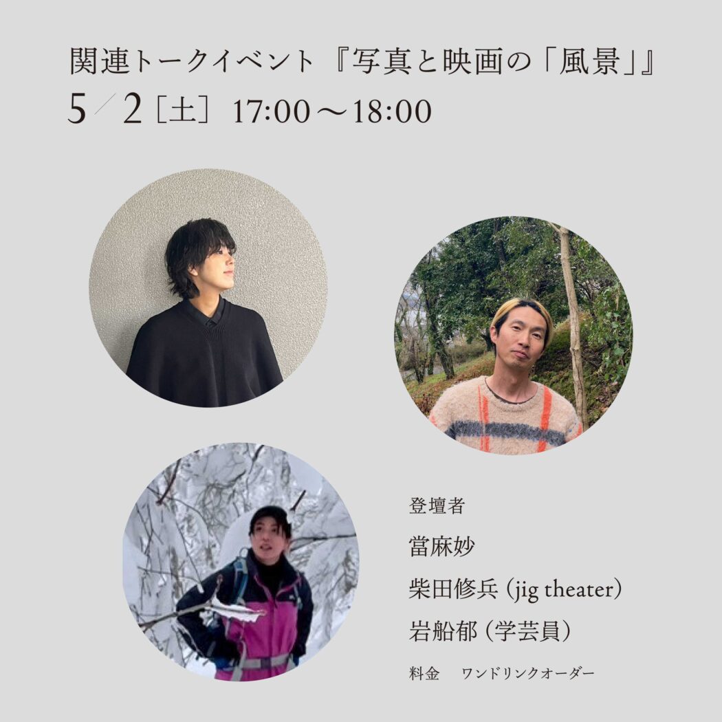 映画と写真、それぞれの風景表現や、「風景とは何か」といったテーマについて語られます。作品を構成する際に當麻さんが勇気をもらったという映像作品や、写真を考えるうえでの参考書籍についての話も聞くことができそうです。