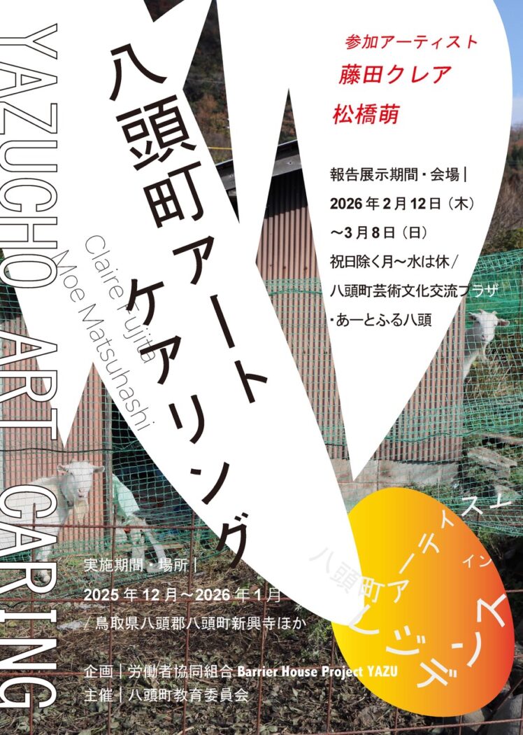 2名のアーティストが、それぞれの現在進行形のプロジェクトと八頭町の生活環境を重ね合わせることで、昨年度とは異なる広がりをもつ滞在プログラムとなり、地域に新しい文化の芽を育てる機会になることを期待しています。