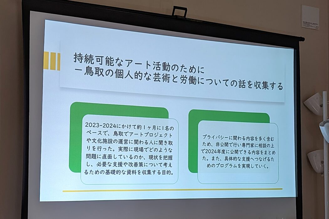 (2)「持続可能なアート活動のために -鳥取の個人的な芸術と労働についての話を収集する」2024年度 最終報告書 参照