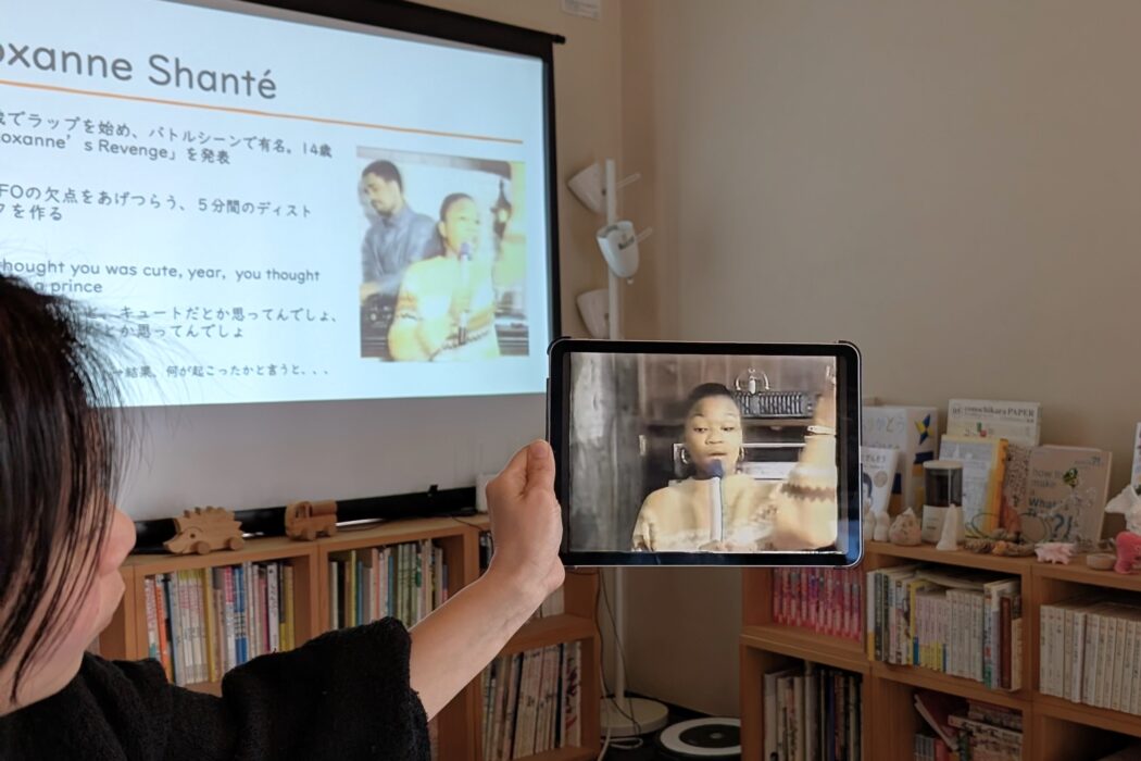 当日は、初参加の方対象のレクチャーや通常のサークル活動も含めた三部構成になっていた。第一部では、先述の労働にまつわるヒアリングを主動したキュレーターの岡田さんによるフィメール・ラップについてのレクチャーを聞く。今やすっかり日常的な存在となったヒップホップ文化は、MC(ラップ)、DJ、ブレイクダンス、グラフィティの4つの要素から成る。1970年代のニューヨーク、貧困や差別といった厳しい社会状況の中で生きるブロンクス地区の若者たちによって、自己表現の手段として生み出された文化である。その一つであるラップは元々持たざる者の音楽、マイノリティの音楽であったが、男性中心の文化であったことから、一部のラッパー達の間でミソジニー(女性蔑視)色の強いラップが広まっていく。そのようなマチズモ(過剰な男性性)とミソジニーに対抗するフィメール・ラップであるが、現在ではクイーンマザー、シスターフッド、サブカル系など様々な形が生まれている。